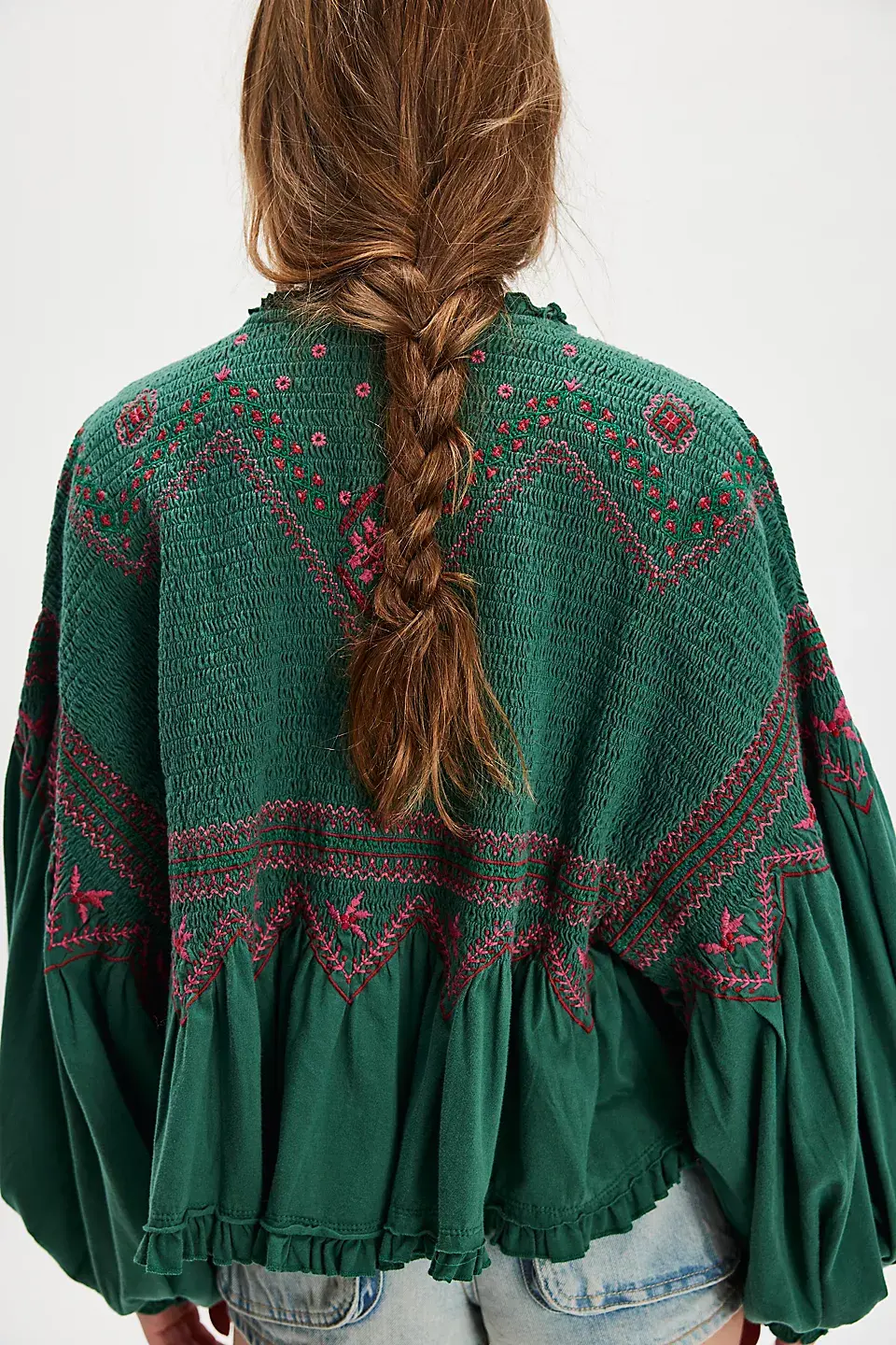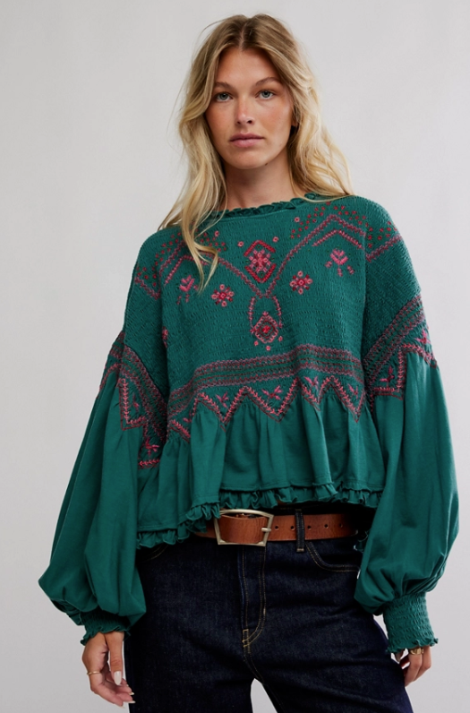 Breezy, billowy, and beautiful, this long-sleeve top features lightweight cotton fabrication, a flowy peplum design, and exaggerated balloon sleeves for an effortless silhouette.
