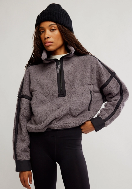 The Fit: Boxy, relaxed fit, short-lengthThe Feel: Soft fleece with a warm feel, durable top-applied nylon seamsThe Features: Zippered pockets at front, high-neckline with a half-zip closure, drop-shoulder sleeves, drawcord at bottom hem for adjustability, nylon cuffsBest For: Cold days spent hiking, commuting, and going to and from; layering up underneath jackets while skiing.