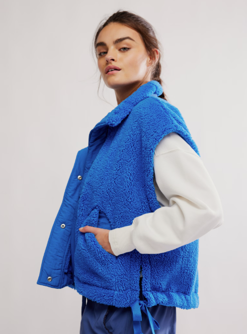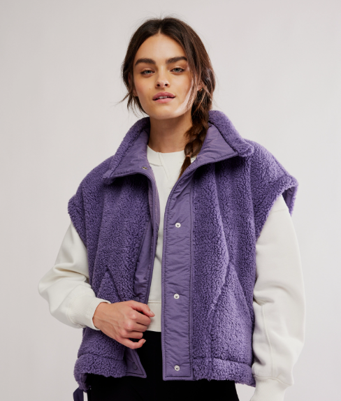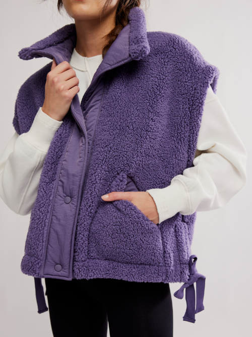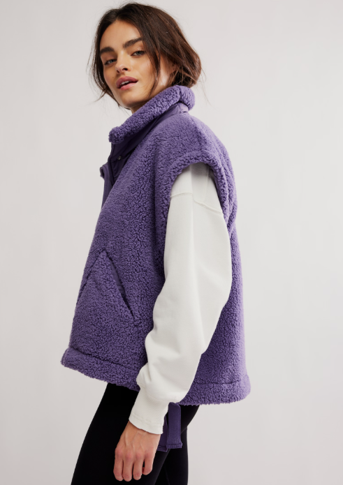 Keep it comfortable in this fleece vest, crafted in a relaxed silhouette for an ultra-cozy feel however you move. Topped with nylon paneling, button-front placket, and funnel neck.