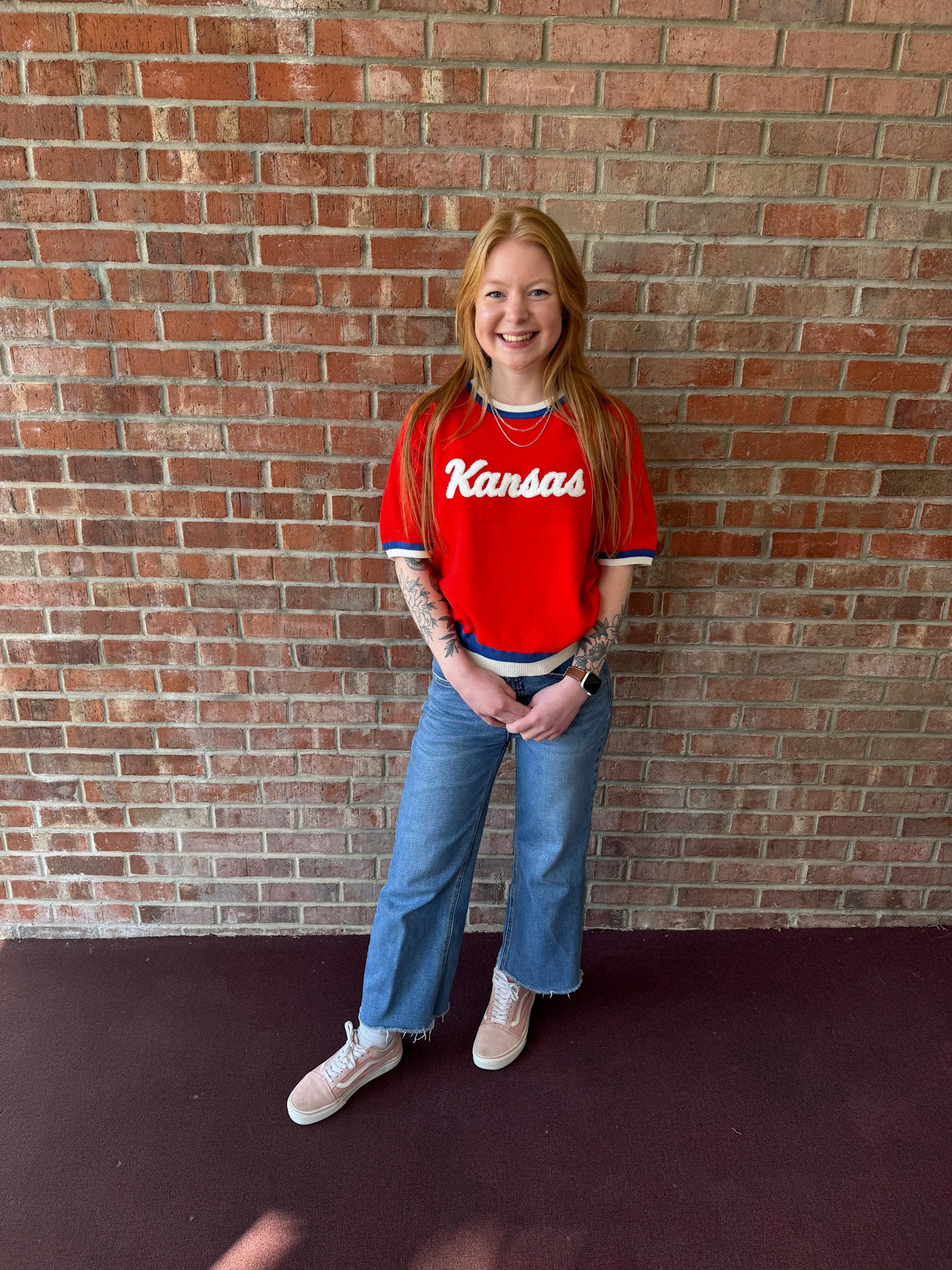 This retro inspired short sleeve sweatshirt is a cute custom addition to any Kansas fan's wardrobe.